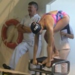 - Øvelse 23, heat 4, bane 4 Kaja R Johannessen klar for 100 IM (individuell Medley)